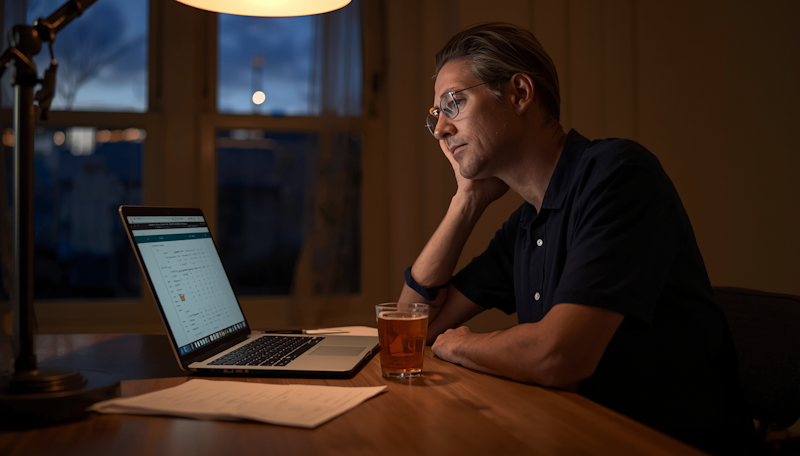 It is 9pm on a Sunday. You are at the kitchen table, laptop open, a cold cup of tea beside you.